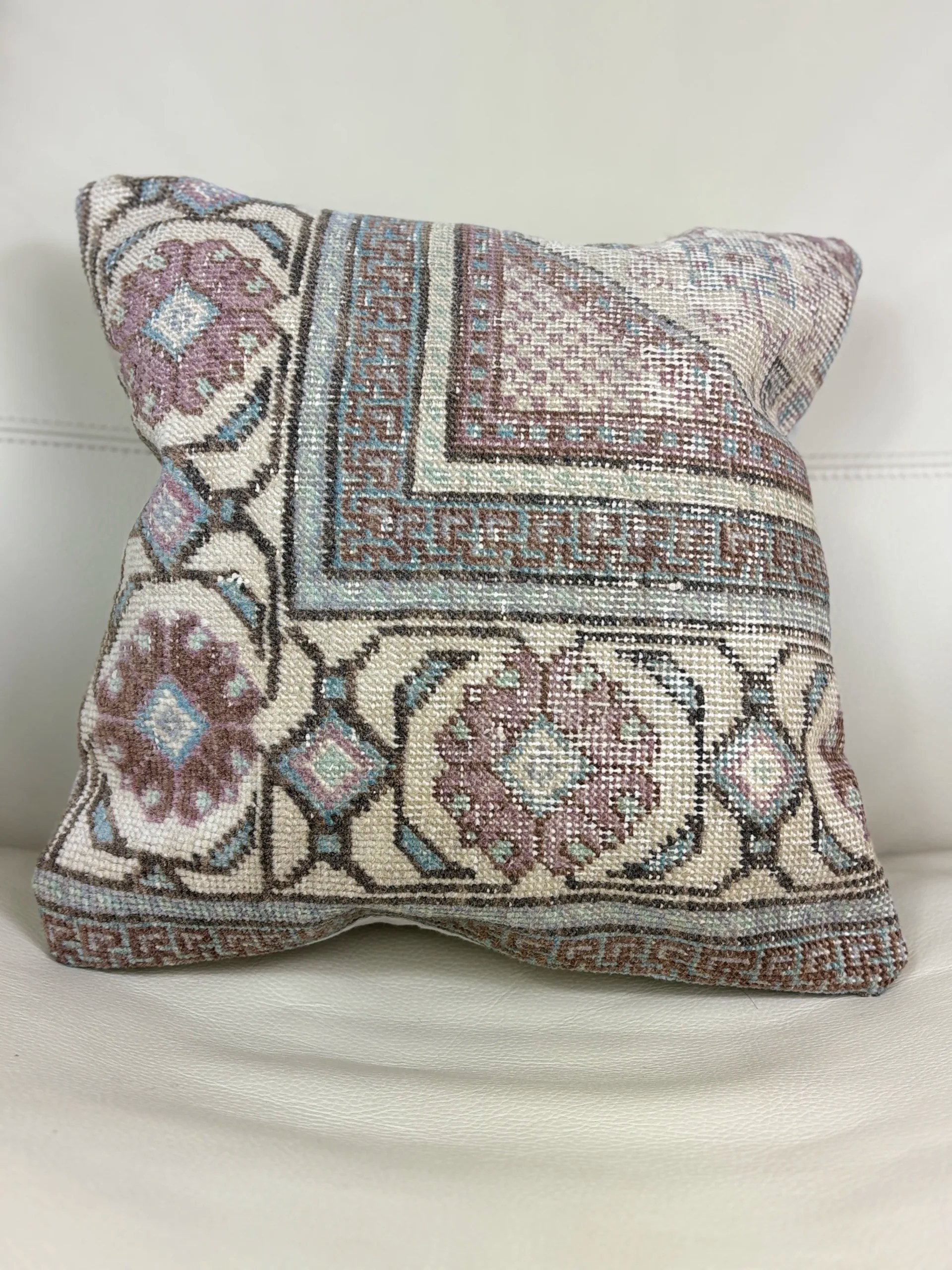Elevate your decor with the timeless elegance of the Vintage Charm Kilim Pillow. Lovingly handcrafted in Turkey from authentic Kilim rugs, this pillow blends the warmth of ivory, the depth of burgundy, and the softness of light blue, evoking the beauty of vintage aesthetics. Its tasteful color palette and intricate woven patterns effortlessly bridge traditional craftsmanship with contemporary sophistication. Whether placed on a sofa, chair, or bed, this pillow adds instant charm, character, and a touch of graceful nostalgia to your living space.